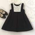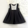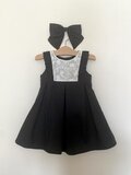 ちょうちょ柄のレースが可愛いブラックワンピース フリル 春夏秋冬 モノトーン 刺繍 90,100,110,120,130,140