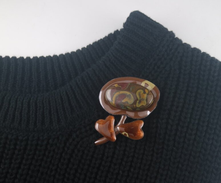 今日ブローチ届き、素敵な色合いにうっとりしました。紫の色が派手すぎず地味すぎずとっても素敵です。プレゼントにしますので喜ばれることと思います。有難うございました。