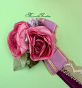 ピンクに染めた可愛いデュエットのローズにヴィンテージのりぼんを添えて作ったコサージュです。
