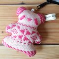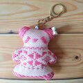 こぎん刺しの伝統模様を取り入れた、くま型のマスコットキーホルダー。