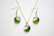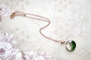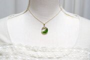 数種類の緑が滲みあう様子が複雑なニュアンスを生んでいるペンダント。境目のゴールドの欠片が上品さと華やかさを添えています。