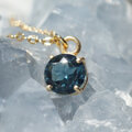 ロンドンブルートパーズの爪留めネックレス★サージカルステンレス50cmスライド ~黎明(れいめい)