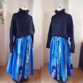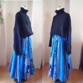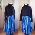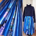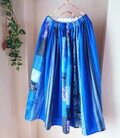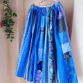 マキシ丈スカート チェック 花柄 ストライプ YUWA 水玉 ドット カラフル 青 ブルー 水色 ブルべ 透明感 春夏 秋冬 ゆったり ウエストゴム サイズフリー オールシーズン対応可能 ボリュームスカート ボリューミー ご褒美 1点もの アート 着るアート アートを纏う 美しいスカート 誰ともかぶらない 大人ガーリー