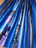 以前から、気になって拝見してましたが、今回思いきって購入させて頂きました。ウエストサイズ調整ありがとうございます。一つ一つのパッチワークが丁寧で、大事に着たいです。少し派手かなとも思いましたが、色々な彩度の布の集合体なので、グレー、ベージュ、茶等、色々あててみましたが、楽しく組み合わせられそうです。