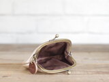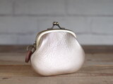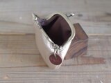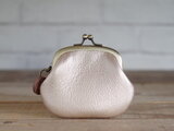 メタリック調のややピンクがかったゴールドの牛革のがま口になります。