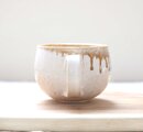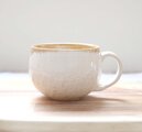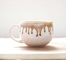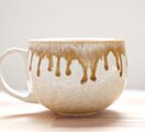 艶やかな白い釉薬を全体にかけ、さらに口元に飴色に流れる釉薬を施した、大きめのマグカップです。