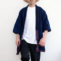 野良着|藍無地裏地 × 縞木綿 ジャパンヴィンテージ|ハンドメイド・リメイクにも