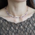 優しいくすみカラーの落ち着いた色合いが目を引く2連ネックレス。