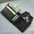 肌触りのいい鹿革を使用し、手縫いによるハンドメイドで自然の風合いを活かし制作した二つ折り財布です。
