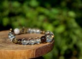 万能なエネルギーを持つ水晶、直感力をつけ、霊性を高めてくれます。そこへスモーキークォーツやブラックルチルの強力な守りの要素が加わりました。
