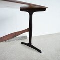 ミッドセンチュリー期のデンマーク家具を象徴する、シンプルでありながら洗練されたデザインを持つサイドテーブルです。デザインはデンマークを代表する家具デザイナー Ole Wanscher(オーレ・ヴァンシャー/1903–1985) によるもので、製作は当時の最高峰の工房のひとつ A.J. Iversen(A.J.イヴァーセン) が手掛けています。高度な職人技と厳選された素材が融合した、他にはない気品を感じさせる一台です。