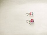 光が透き通り輝く、お菓子のようなピアスです。チェコビーズにはガラスのしっとりとした重みがあります。陽の光のもとと、室内光では目立つ色味が少し変わります。