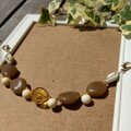 剥いた焼き栗みたいなアクリルビーズとアイボリー調の玉を合わせた羽織紐です。