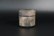 外側 白石目塗りの上から黒漆を塗り研ぎ出し、さらに錫粉と真鍮粉を蒔いて、