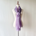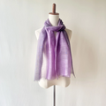 さらウール*WOOLSILK*葡萄色×白色×月白色*手染ウールシルクストール3枚目の購入です。プレゼントも入れたら4枚目。 今回は多色のグラデーションにしました。 色合いが本当に素敵で、多色なのでいろんなお洋服に合うと思います。 価格はお手頃、品質良し、発送早い、3拍子揃っており今回も気持ち良いお取引ができました、