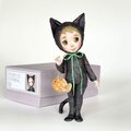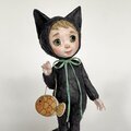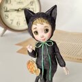 しなやかな尻尾に、首元に細いリボン、黒猫に扮した女の子。