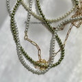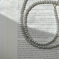 カラー ガラス パール と チェーン の ネックレス ・ ミストグレー
