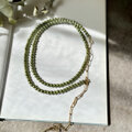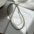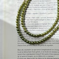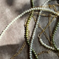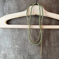 カラー ガラス パール と チェーン の ネックレス ・ カーキグリーン