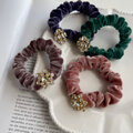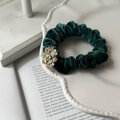 大きなチェコガラスボタンを留めたベロアシュシュです。