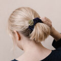 大きなチェコガラスボタンを留めたベロアシュシュです。