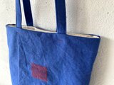 アンティーク加工された雰囲気のある生地を表地に、内袋は綿麻生地を使いました。
