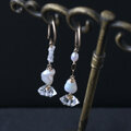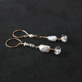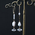 ハーキマーダイヤ・原石ダイヤ・淡水パールのアシンメトリーピアス・イヤリング変更可