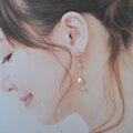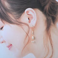 ハーキマーダイヤは9.5mmの大粒タイプ。透明度が非常に高く輝きがとてもきれいです。原石ダイヤは一見小さな石の粒のようですが、 細かな粒子状の断面が濡れたようににキラキラと輝いてとても存在感があります。淡水パールも自然な凹凸のあるバロックタイプ。質感・ツヤ・輝きの異なるホワイト系の石たちが耳元でさりげなく揺れてきれいです。