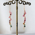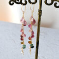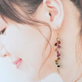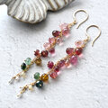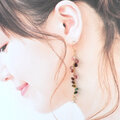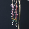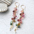 最下部にはボタンカットのマルチカラートルマリンとプレシャスオパール、ジルコンをあわせています。フックはハンドメイドの14kgfフックを使っています。