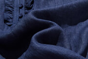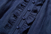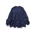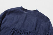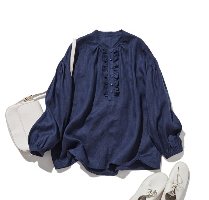 フロントフリルが可愛い フランチリネン100% シャツブラウス 紺色 250913-2