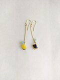 光が透き通り輝く、お菓子のようなピアスです。チェコビーズにはガラスのしっとりとした重みがあります。陽の光のもとと、室内光では目立つ色味が少し変わります。
