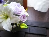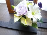 ・百合(小)・バラ・カーネーション・アンスリウム・カスミソウ(お花はすべて粘土のお花です)