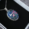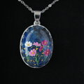 〜ラピスラズリとコスモスのペンダント(金沢箔24K入り)〜