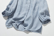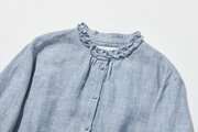 一番の特徴は、同じリネン素材で作られた繊細なフリル。首元と袖口をやさしく飾り、“甘すぎない”上品な可愛らしさを演出します。