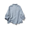 大人の上品で可愛らしい雰囲気をまとうリネン ブラウス リネン100% シャツブラウス ライトブルー250914-1
