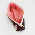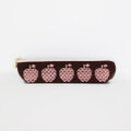 ゆめかわりんごのスリムペンケース(筆箱)こぎん刺し/刺し子/刺繍 ブラウン×ピンク フルーツ