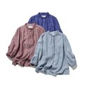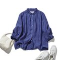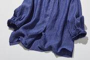 大人の上品で可愛らしい雰囲気をまとうリネン ブラウス リネン100% シャツブラウス 青 250914-3