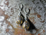 トルクメニスタン細工ビーズとシルバービーズを繋いだピアスです。