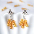 「みたらし団子」ピアス イヤリング 天然石 アンバー 琥珀 秋 シルバー silver925 金属アレルギー対応
