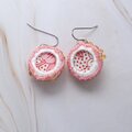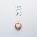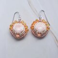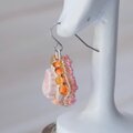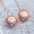 ビーズ刺繍のフック式ピアス|ピンクの貝モチーフ×オレンジ|サージカルステンレス|ギフトにも|No.23