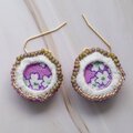 ビーズ刺繍のフック式ピアス|パープルの花モチーフ×ピンク|サージカルステンレス|ギフトにも|No.3