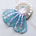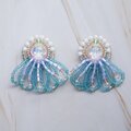 ビーズ刺繍の豪華なフリンジイヤリング/ピアス|No.1|クラゲのような透明感|ブルー&クリア|個性的な一点物|金具選択可