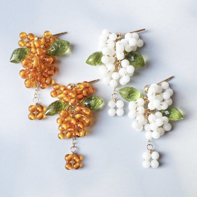 「金木犀と銀木犀」ピアス イヤリング 天然石 秋 金属アレルギー対応