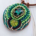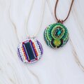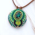 グリーンのビーズ刺繍ミラーネックレス|No.13|裏面ミラー付き|一点物|おしゃれで便利|外出時に活躍