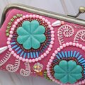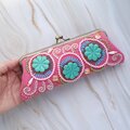 ビーズ刺繍のがま口眼鏡ケース・ペンケース No.20|ピンク×ビーズ刺繍|一点もの|母の日・敬老の日ギフトに