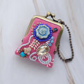 小さなビーズ刺繍のがま口 No.71|ピンクのガーゼ|ネックレス・バッグチャームにも|アクセサリーケース|一点物