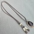 紐にはシルクコードを用い、長さ調整用のビーズやエンドパーツも同じく鹿の角から制作しています。