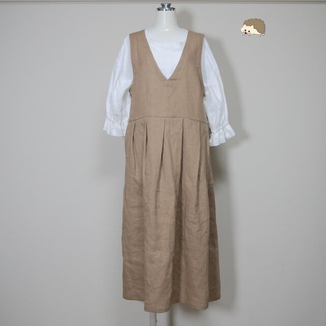 さらっとリネン◆Vネックジャンスカ◆ライトキャメル◆M・L・LL(中厚、リネン100%)