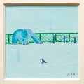 曇り空の下、少し寂しそうな水色の象に何かシンパシーを感じ、絵にしました。