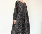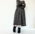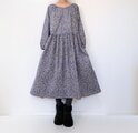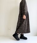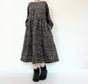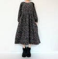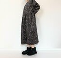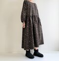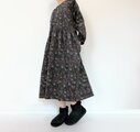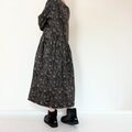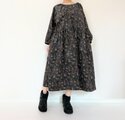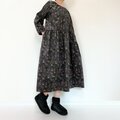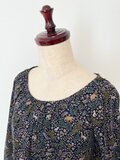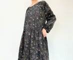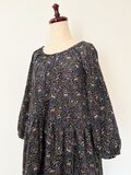 リバティ*大人のナチュラル長袖ワンピース*動物と草花柄*秋冬あったかコーデュロイ*国産コットン100%*ダークネイビー