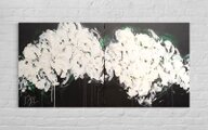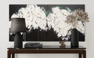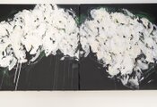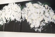 シンプルな白ベースの花を2連キャンバスに表現した作品。